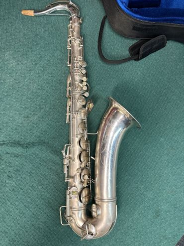This is a beautiful original silver 1945 10M. Yes, still has the rolled tone holes! Freshly re-padded with Black Roo pads and Tenor Maddness Flat Seamless Brass Resonators by myself. Includes a brand new Protec XL case.