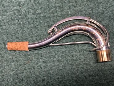 As the horn came into my possession without a neck, and going out on a hunt for one, I decided on a silver plated Eastern (brand) Power Neck, model C-10. They were designed for the 10M. The scale is very spot on with a bit of a more modern sound.